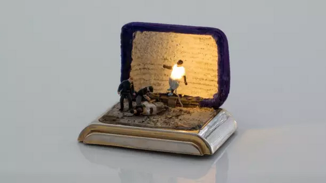 這是一位名叫Curtis Talwst Santiago 的藝術(shù)家的杰作,Talwst開(kāi)始藝術(shù)創(chuàng)作是在2008年,那時(shí)他還是一位前途可期的音樂(lè)人,只是閑暇時(shí)會(huì)用繪畫和雕塑來(lái)抵抗溫哥華多雨的憂郁。一天,一個(gè)他經(jīng)常光顧的路邊小販拿出一個(gè)小首飾盒,想看Talwst能用它做點(diǎn)什么出來(lái)。打開(kāi)這個(gè)首飾盒,讓Talwst實(shí)現(xiàn)了真正的跨界,他在首飾盒里繪制的微縮立體模型在藝術(shù)舞臺(tái)上獨(dú)放異彩。