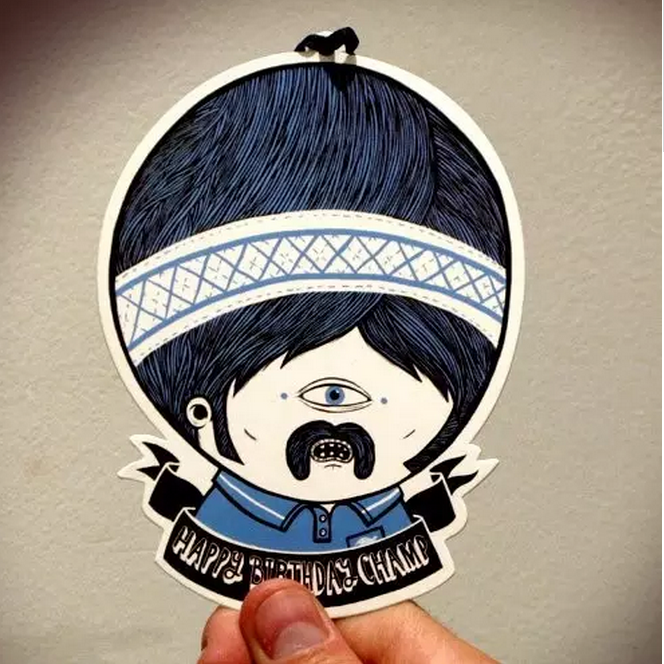 首先是來自于插畫師的創(chuàng)意,將插畫融進(jìn)吊牌里,而且這些吊牌的模樣十分的逗趣,看這大頭娃娃,只有一只眼睛,沒有鼻子,只有大胡子和一個嘴巴,單挑出來看可能很詭異,但組合在一起卻異常的和諧。