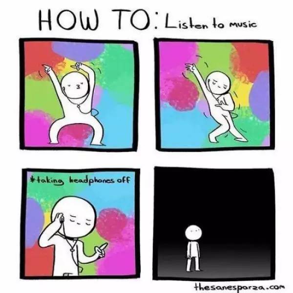 可是拿下耳機(jī),現(xiàn)實(shí)又回來了,從虛幻的世界再次回到現(xiàn)實(shí)的落寞你是否接受得了?是不是有了永遠(yuǎn)都不想把耳機(jī)摘下來的沖動?但這又不太現(xiàn)實(shí),果然,逃避并不是一個(gè)好辦法,那就面對吧!