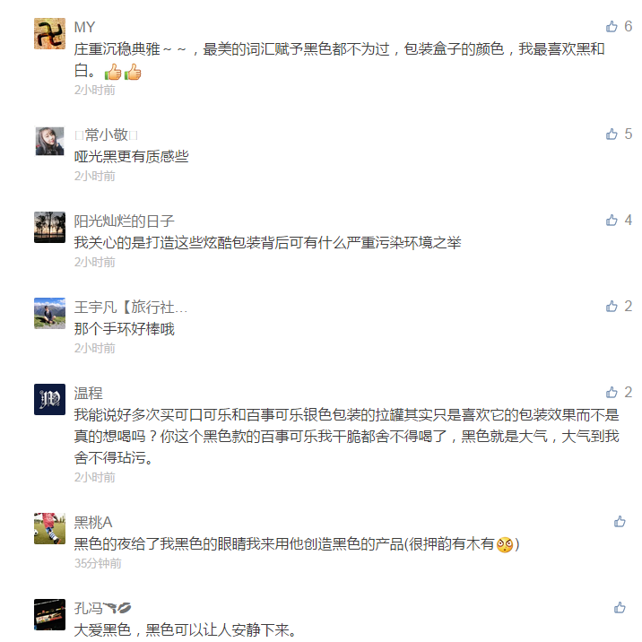 我們?nèi)粘I钪泻鹊降娘嬃习b一般都是紅色的(可口可樂)、藍(lán)色的(百事可樂)、黃色的(美年達(dá))等等,但就是很少見到有黑色的包裝,可以想象一下,如果你到冰柜里找飲料喝,在五彩繽紛的一眾“妖艷貨色”中獨(dú)獨(dú)有個(gè)黑色的“小公舉”,相信很多人會(huì)選擇那個(gè)與眾不同的吧。
