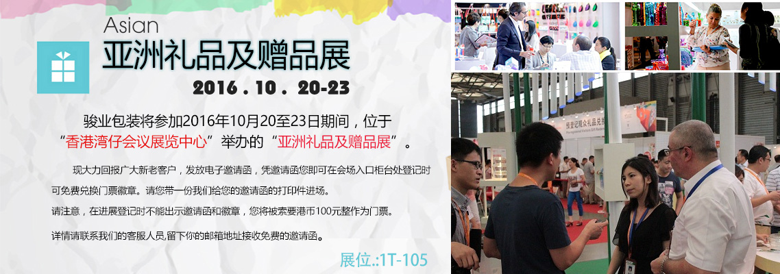 亞太區(qū)內(nèi)其中一項(xiàng)舉足輕重的超大型貿(mào)易展會(huì)-亞洲禮品及贈(zèng)品展將于2016年10月20至23日香港灣仔國(guó)際會(huì)議展覽中心隆重舉行,屆時(shí)廣州駿業(yè)包裝盒制作廠家將盛裝亮相。