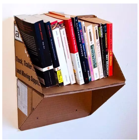 然后,將鞋盒從中間折開,用膠水固定住,稍加裝飾就是一個書架啦~是不是很So easy 啊?