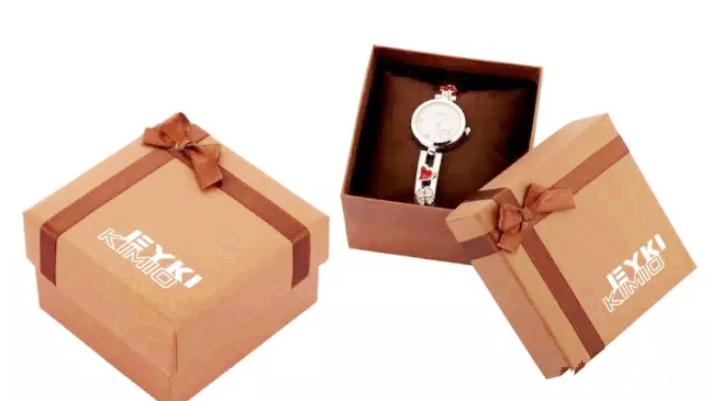 第一種:手表包裝盒,也是最低檔的一種。一般用的就是白色單粉卡紙,或說(shuō)灰卡紙,以及牛皮紙。以卡盒,或說(shuō)彩盒的形式,給手表進(jìn)行簡(jiǎn)單的包裝。稍微有點(diǎn)要求的,會(huì)在盒子的表面印上手表的圖案與生產(chǎn)廠家。對(duì)包裝,沒(méi)有特別的要求,對(duì)包裝的成本,通常要求最低化,不求包裝質(zhì)量。也不用包裝盒的促銷功能!這樣的手表包裝盒一般都是用在買一贈(zèng)一的這種模式,不知道大家還記得小時(shí)候買書(shū)包時(shí)送的手表嗎?用的就是這種手表包裝盒。